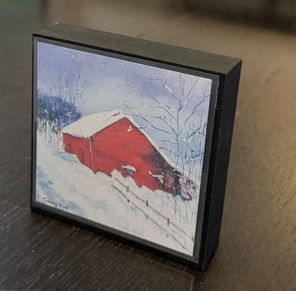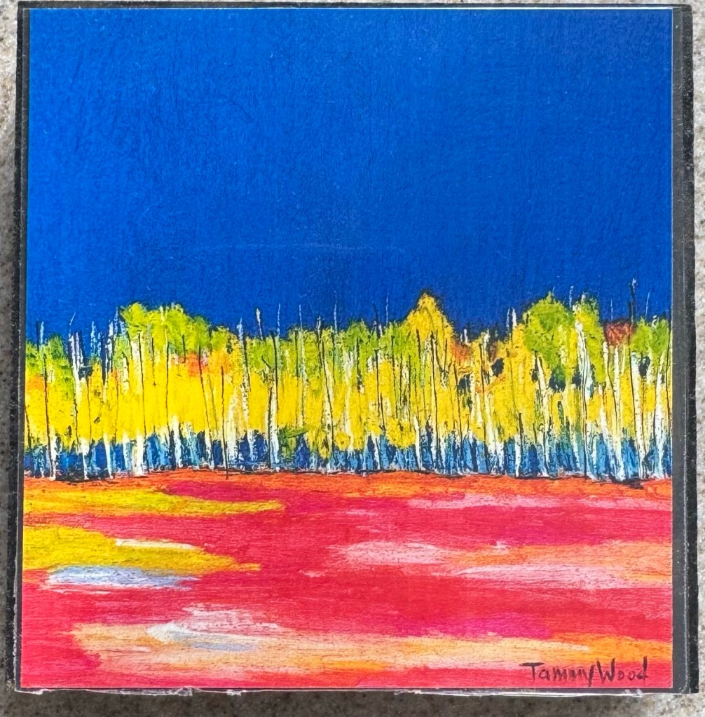 To make my art accessible to more people, I print some of my art, laminate print, and put them on 4”x4” wood blocks that can hang on a wall or sit on a shelf.